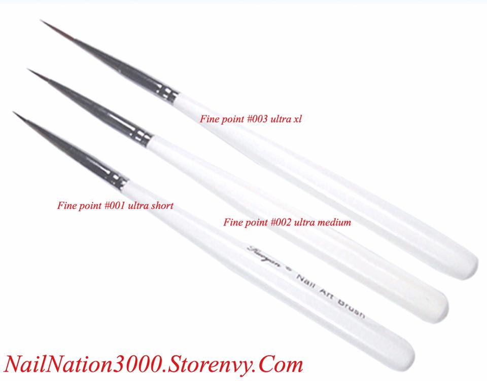 Need to do fine point work? Want to touch up or create that dramtic smile line on that french mani? Love have tiny details in every artistic inch of your nails? Or need a small tip to reach those small spaces? These three sets are great! 3 pcs sets white is in wooden handle with shorter ultra fine brushes. Black set has longer brushes and more point with a sturdy resin plastic handle! Easy to use!
