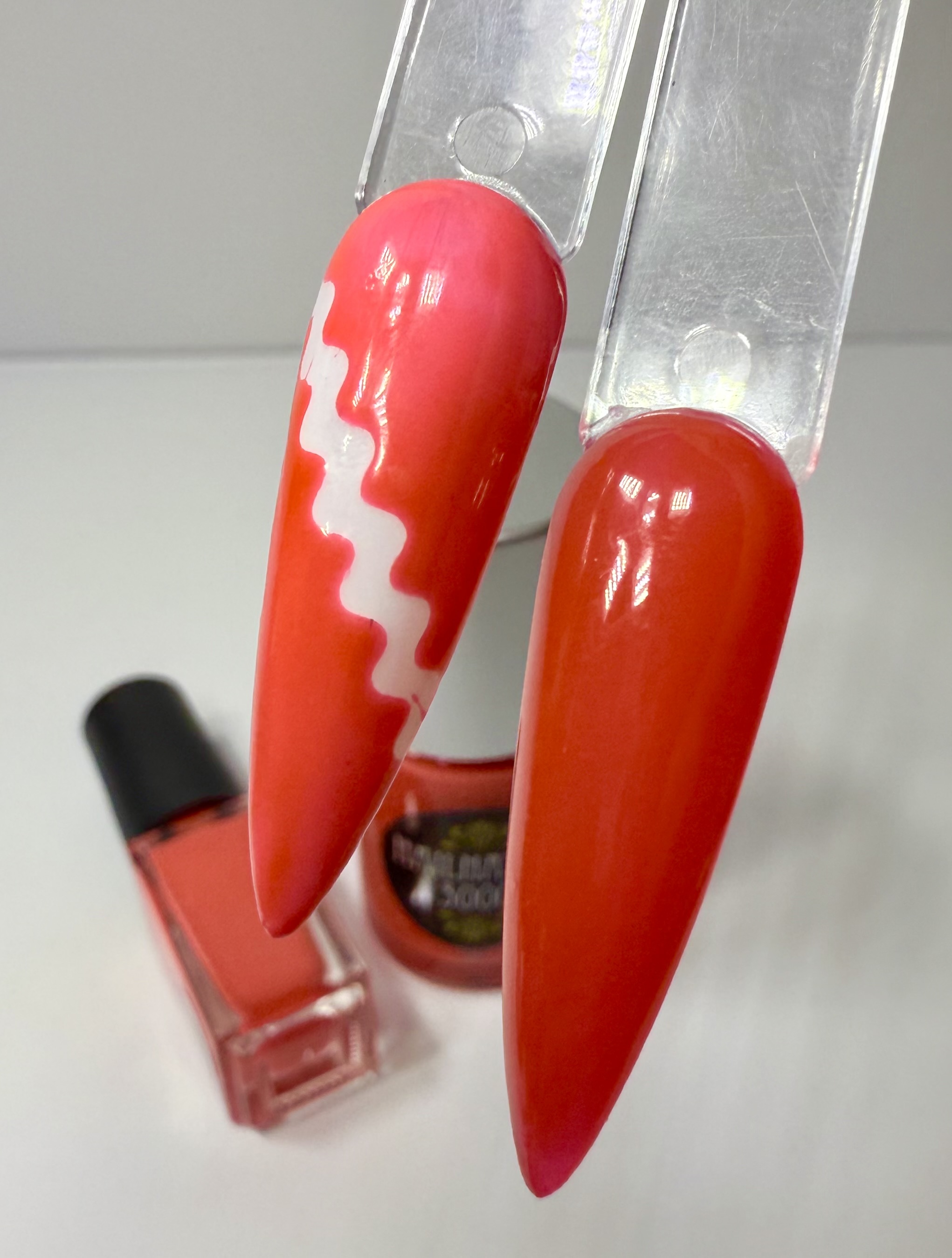 This is a shock pink creamy shade that looks beautiful alone or over white for even more pop! This pink is also AMAZING with a coat of LOVE BOMB! Shown with white and alone with and without topcoat and with LOVE BOMG! Dries in a matte like egg shell without topcoat! Pairs well with Under Stimulated, Love Bomb,Sorry So Late and Creative AF glitter topper!