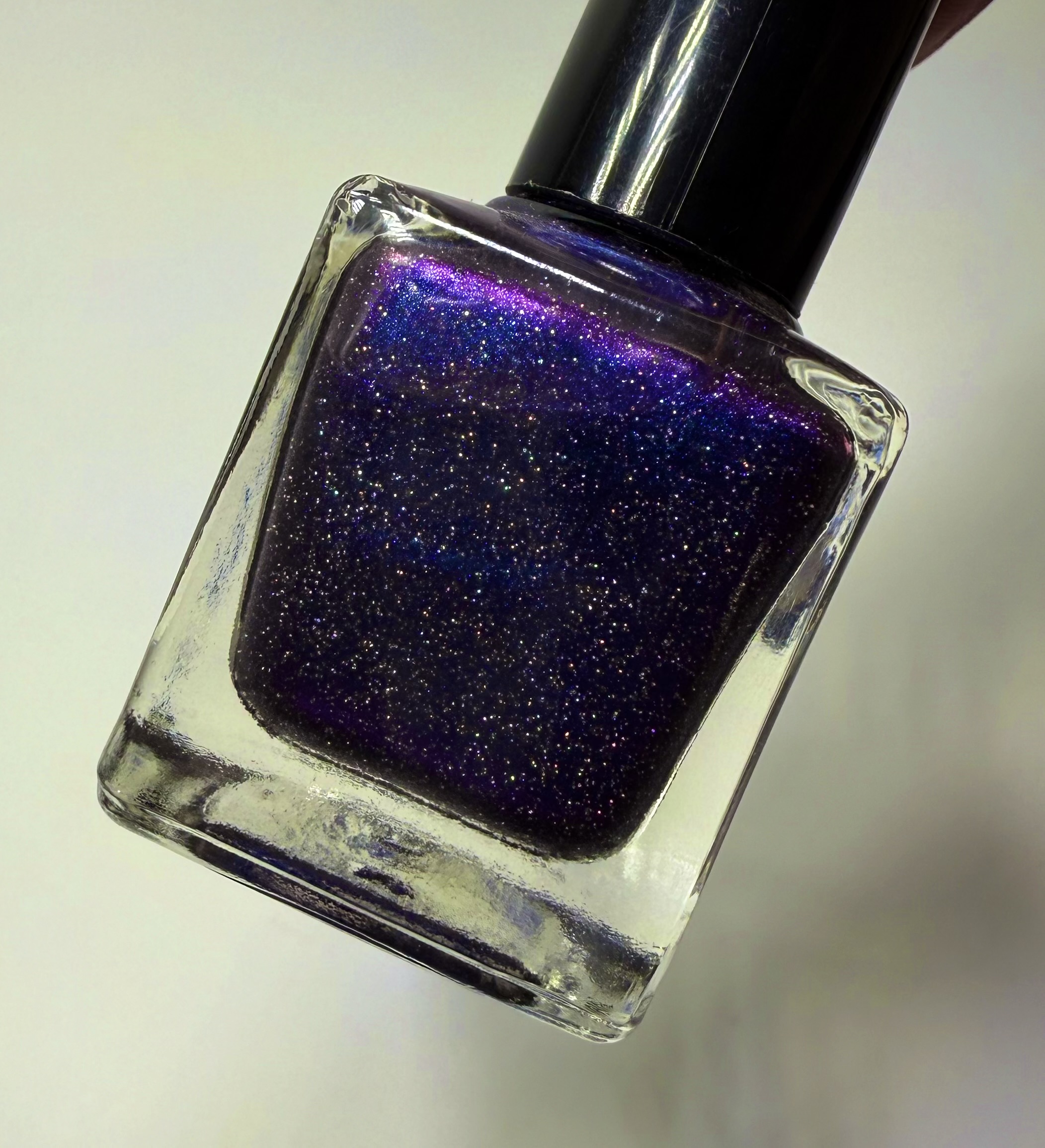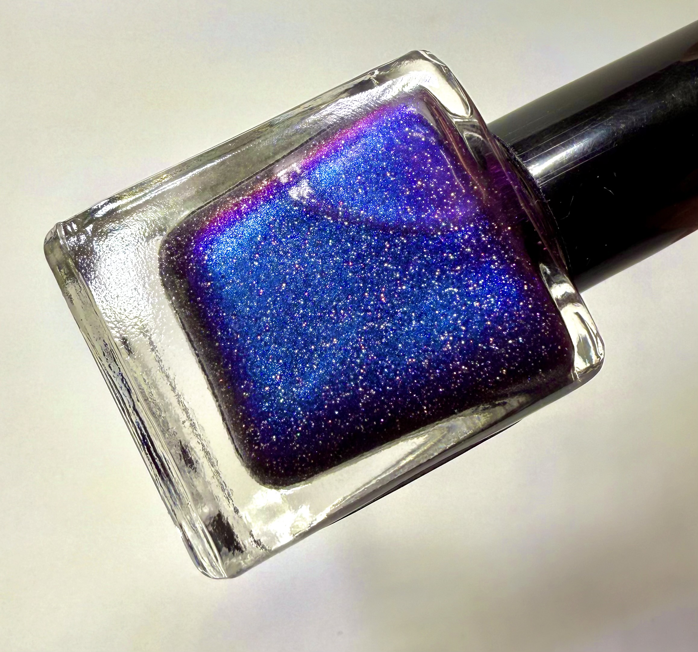 Doom piles when you know, you know many of us have them some of us use them to organize some of us live by the doom pile. This stunning fully opaque into coat chrome shifter with a purple base and a rich blue ghost is beautiful. She looks the best with two coats of topcoat or one very high gloss topcoat Since she is a glitter her glitter bomb grit rating is a one I do recommend topcoat however she may be worn without it if you like that slightly glitter look without it she looks stunning over blue black purple, dark shades, especially an amazing nail art very shifty and difficult to photograph so there is a video on nailnation 3000 llc on face book !